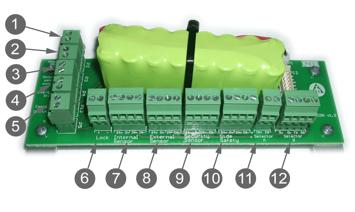 Wiring – Quick plug-in wiring hub ‘Emicon’ interface board offers a faster means of accessory connection. Communication of all accessory and safety signals are combined with battery input and lock control. Working in parallel, these signals are controlled via our Selector Switch for greater ease of operation by the end user. All signals and sensor accessories are monitored, complaint with EU Norm EN16005.