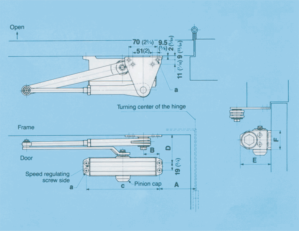 - Parallel arm application should also be used when the reveal is deeper than 70mm (2 3/4″) or where the closer arm is requited not to project into the room.